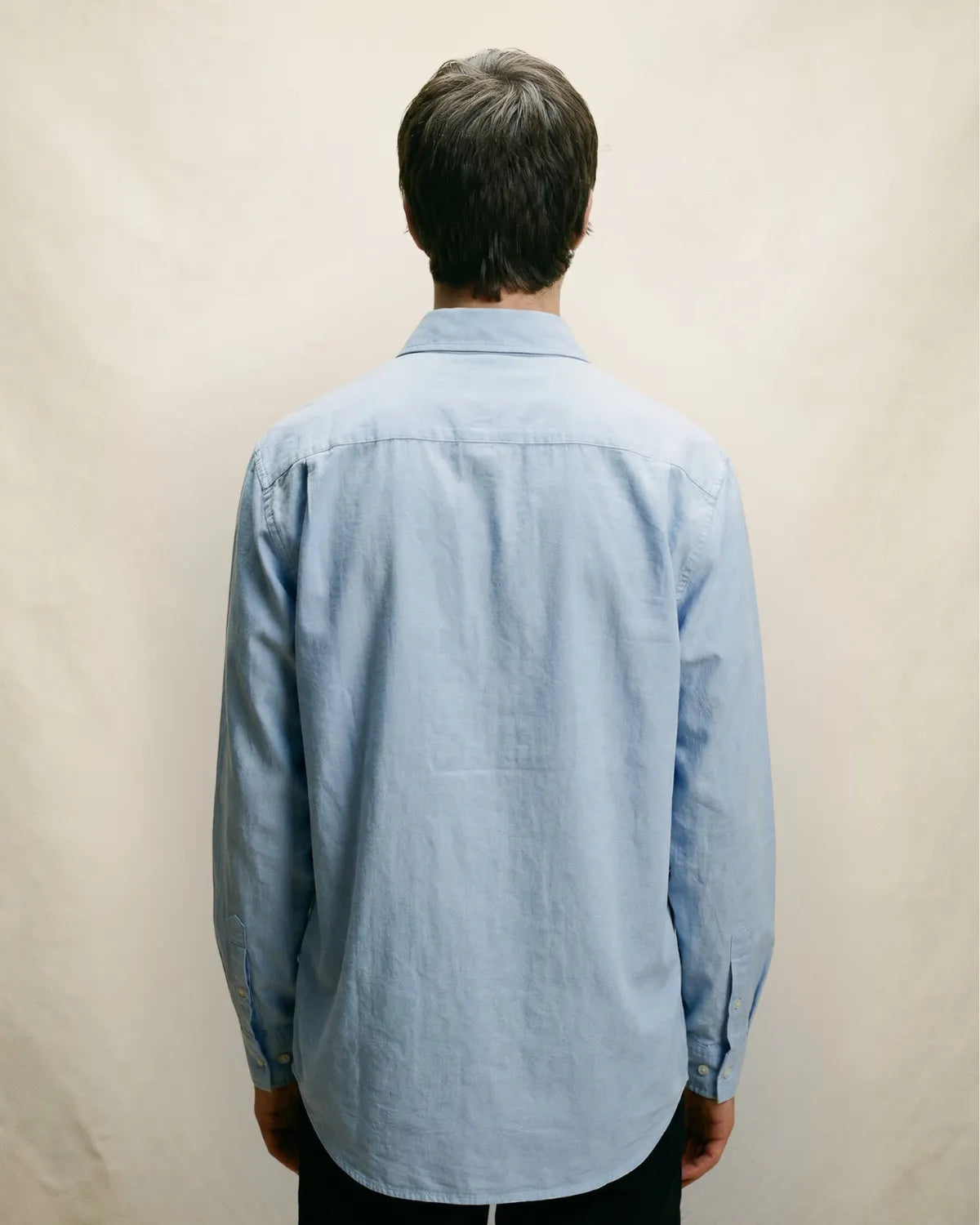 The Ocean Ease Shirt is a light blue long-sleeved shirt from Common Interests Clo. Designed with a slightly oversized fit, it offers both structure and ease, perfect for dressing up or down.